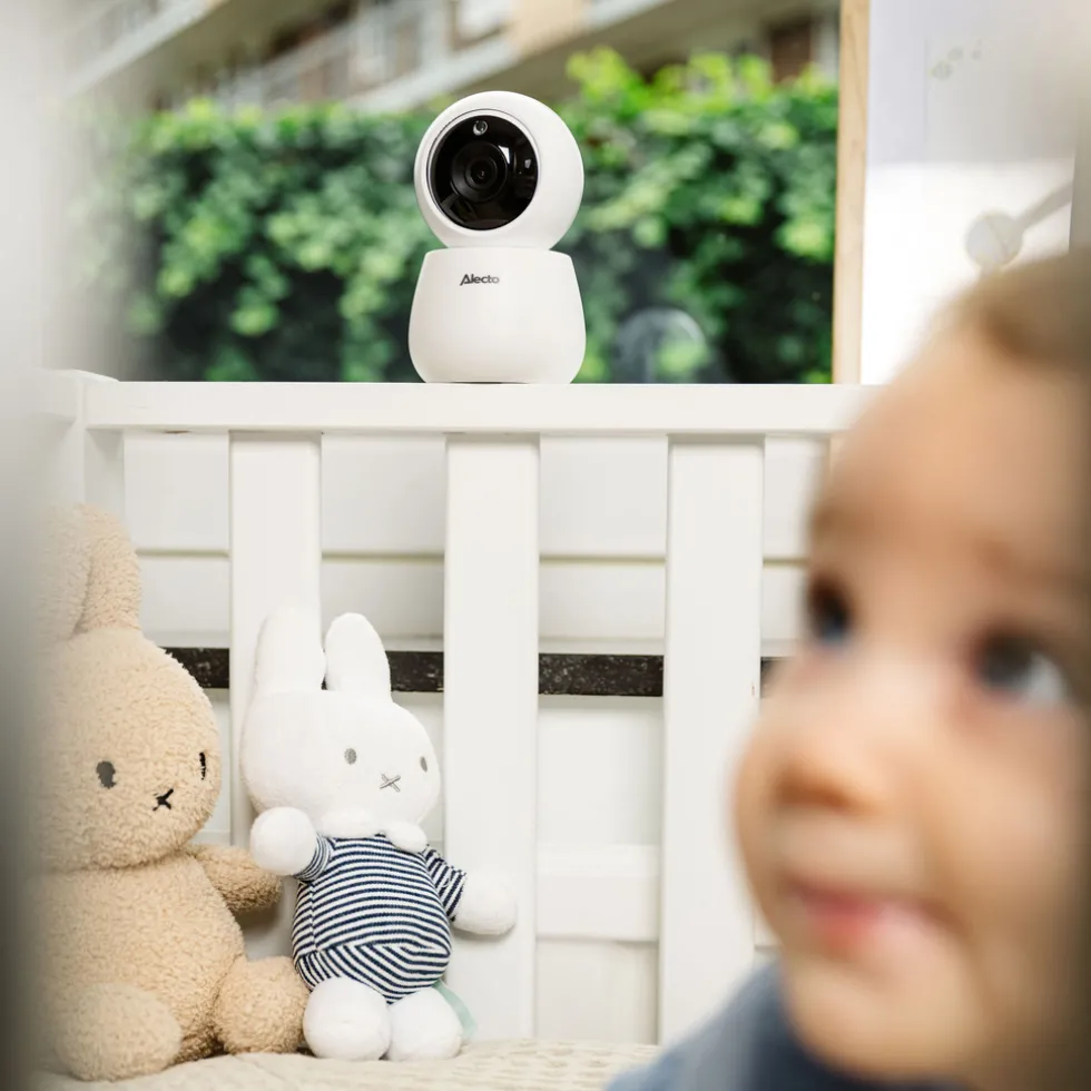 - Op afstand bedienbare camera (pan/tilt): Met de op afstand bedienbare camera kun je de kijkhoek eenvoudig aanpassen, zowel horizontaal als verticaal, zonder de babykamer te hoeven betreden. Zo heb je altijd het beste zicht, waar je kindje zich ook bevindt.