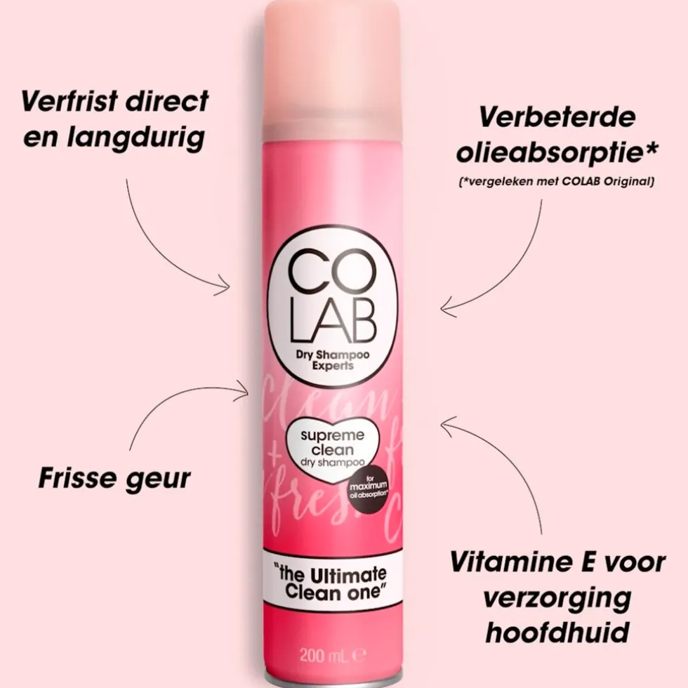 Colab Supreme Clean Droogshampoo is een droogshampoo met een hogere olie-absorptie* waardoor je haar gedurende de dag fris blijft aanvoelen.