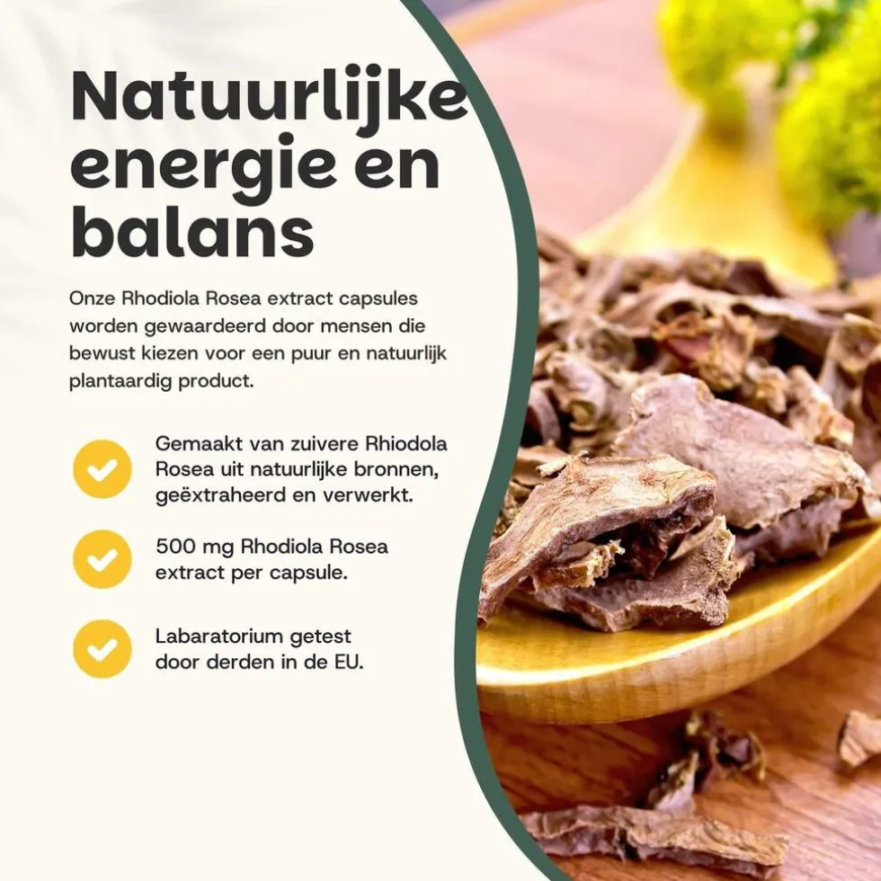 ✔️ 500 mg Rhodiola Rosea extract per capsule ✔️ Zonder vulmiddelen ✔️ 100% Natuurlijk Supplement