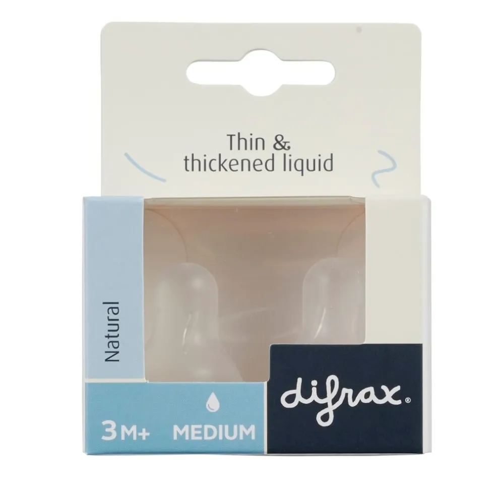 Difrax Natural 3+M Medium Flessenspenen zijn geschikt voor dunne en ingedikte voeding, zoals melkvoeding met bloem- of rijstepap.