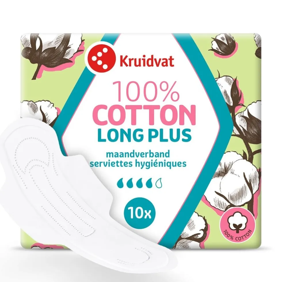 Ga jij liever voor puur natuur? Het Kruidvat 100% Cotton Long Plus Ultra Maandverband is letterlijk een verademing voor je gevoelige huid.