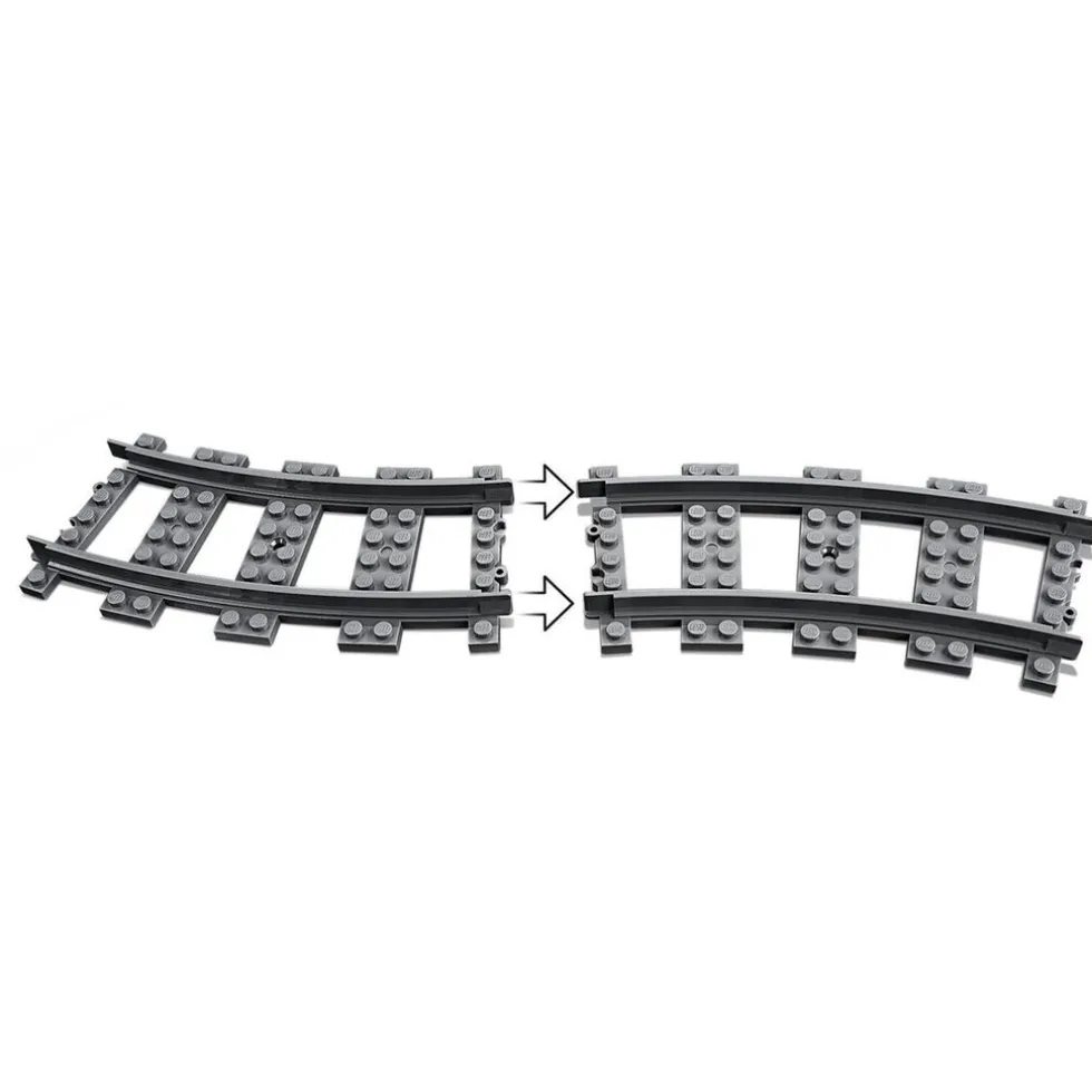 Voeg de gebogen rails en wissels toe aan je set, zet de passagiers of de vracht in de trein en begin aan een spannende reis door LEGO City!