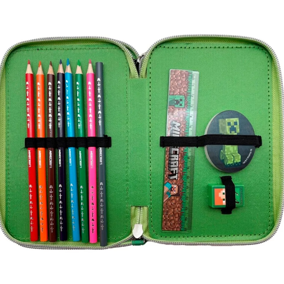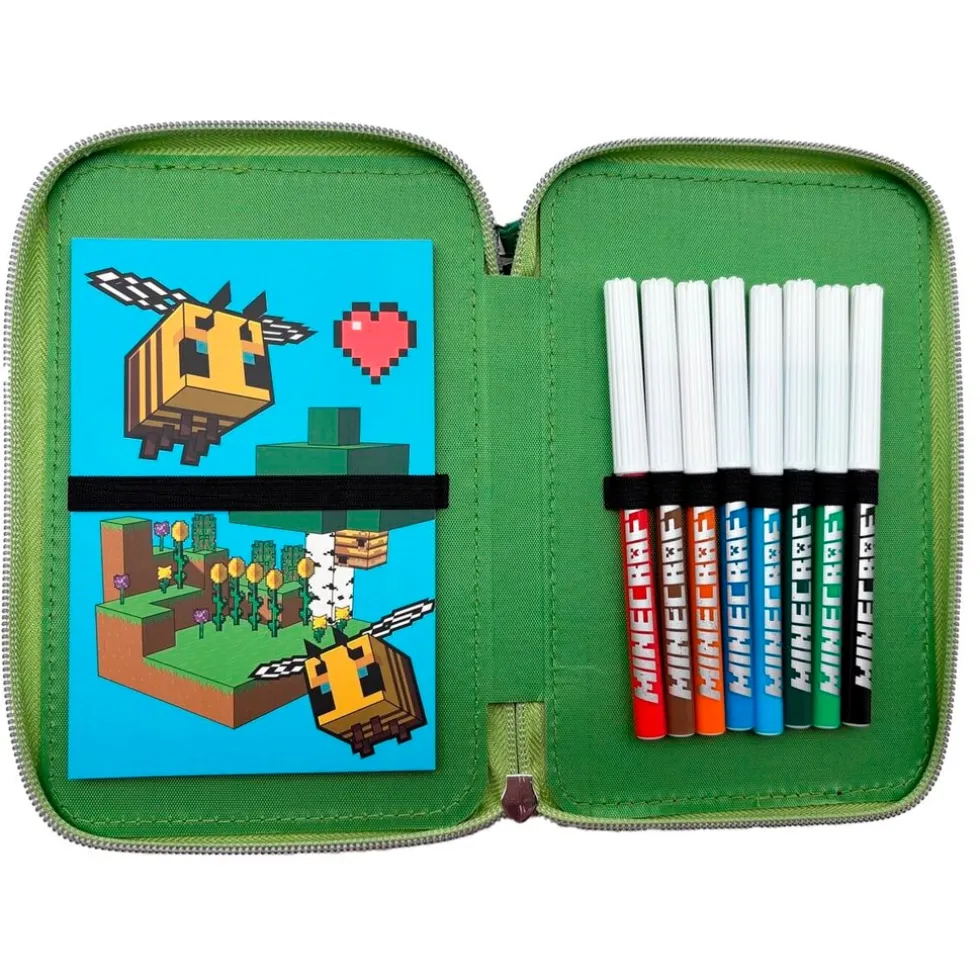 Neem pennen en stiften overal mee naartoe in deze Minecraft Gevulde Etui. De etui is gevuld met onder andere een notitieboekje, pennen, potloden, een gum en een liniaal. Geschikt voor kinderen vanaf 3 jaar.