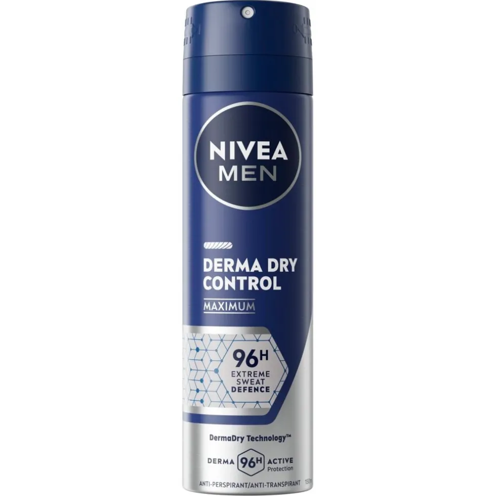 NIVEA Men Derma Dry Control Antitranspirant Spray is NIVEA’s sterkste antitranspiratiespray die 96 uur bescherming biedt tegen overmatig zweten, natheid en geur.