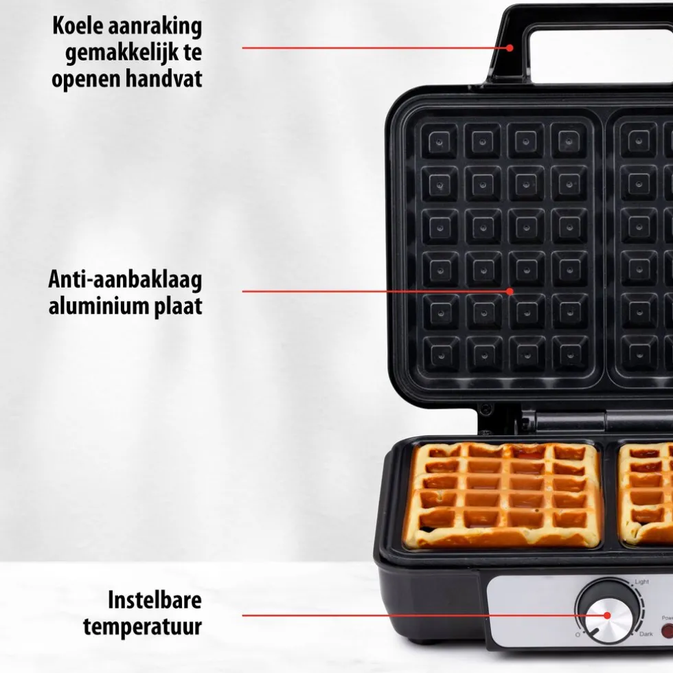 Wafelijzer anti-aanbaklaag en indicatielicht