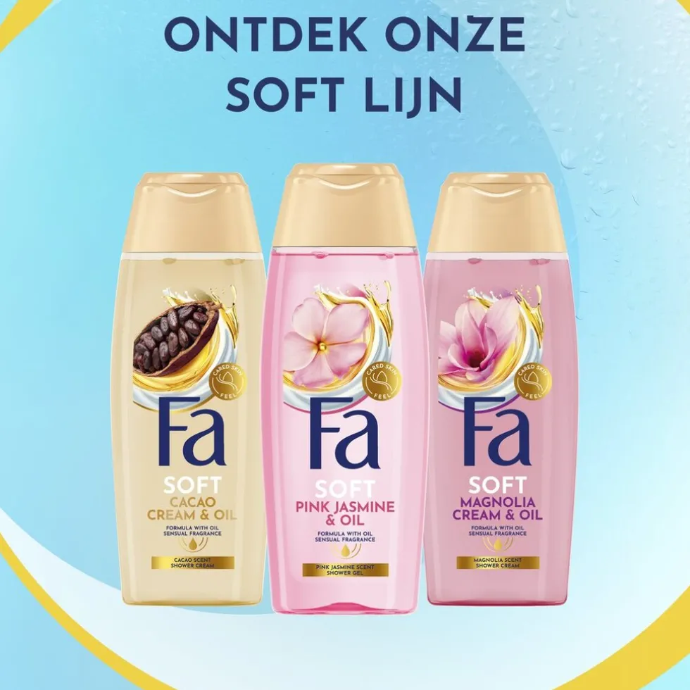 Ontdek Fa Pink Jasmine & Oil Douchegel met de heerlijke geur van roze jasmijn. De vegan formule bevat 94% ingrediënten van natuurlijke oorsprong (inclusief water).