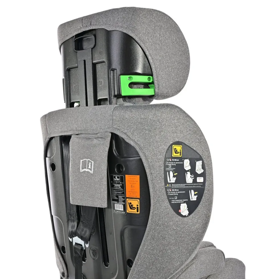 Je plaatst de autostoel altijd voorwaarts in de auto en bevestigt deze door middel van de autogordel. Bij een lengte van 76 tot 105 cm zit je kindje vast met het 5-punts veiligheidstuigje dat zachte gordelkussens heeft. Vanaf een lengte van 100 cm mag je het 5-punts veiligheidstuigje weghalen en gebruik je de 3-punts autogordel om zowel je kindje als de autostoel vast te zetten. De hoofdsteun is verstelbaar in verschillende posities, zodat deze altijd perfect aan te passen is naar de lengte van jouw kindje.