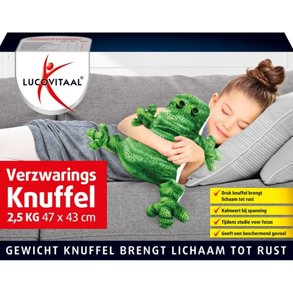 De Lucovitaal Verzwaringsknuffel helpt onder andere om hyperactieve kinderen te ontspannen. De knuffel is een hulpmiddel dat is ontworpen om druk toe te dienen op de benen of andere lichaamsdelen tijdens zit- of lig momenten. Een verzwaringsknuffel geeft geborgenheid en een veilig gevoel, kalmeert bij onrustigheid en kan meer focus en concentratie geven tijdens studie.