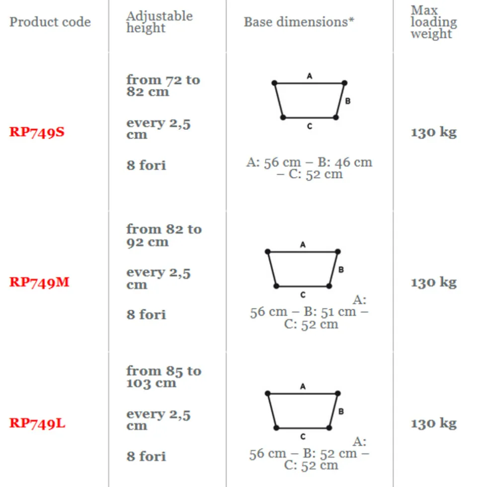 Verstelbaar per 2,5 cm