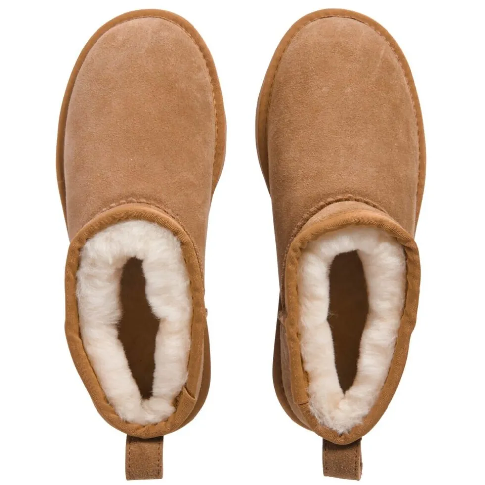 Draag deze mooie Korte Dameslaarzen op de koudere dagen. Deze suède enkellaarsen draag je binnen en buiten. Ze zijn erg comfortabel door de voering van lamswol en de trendy dikke zool.