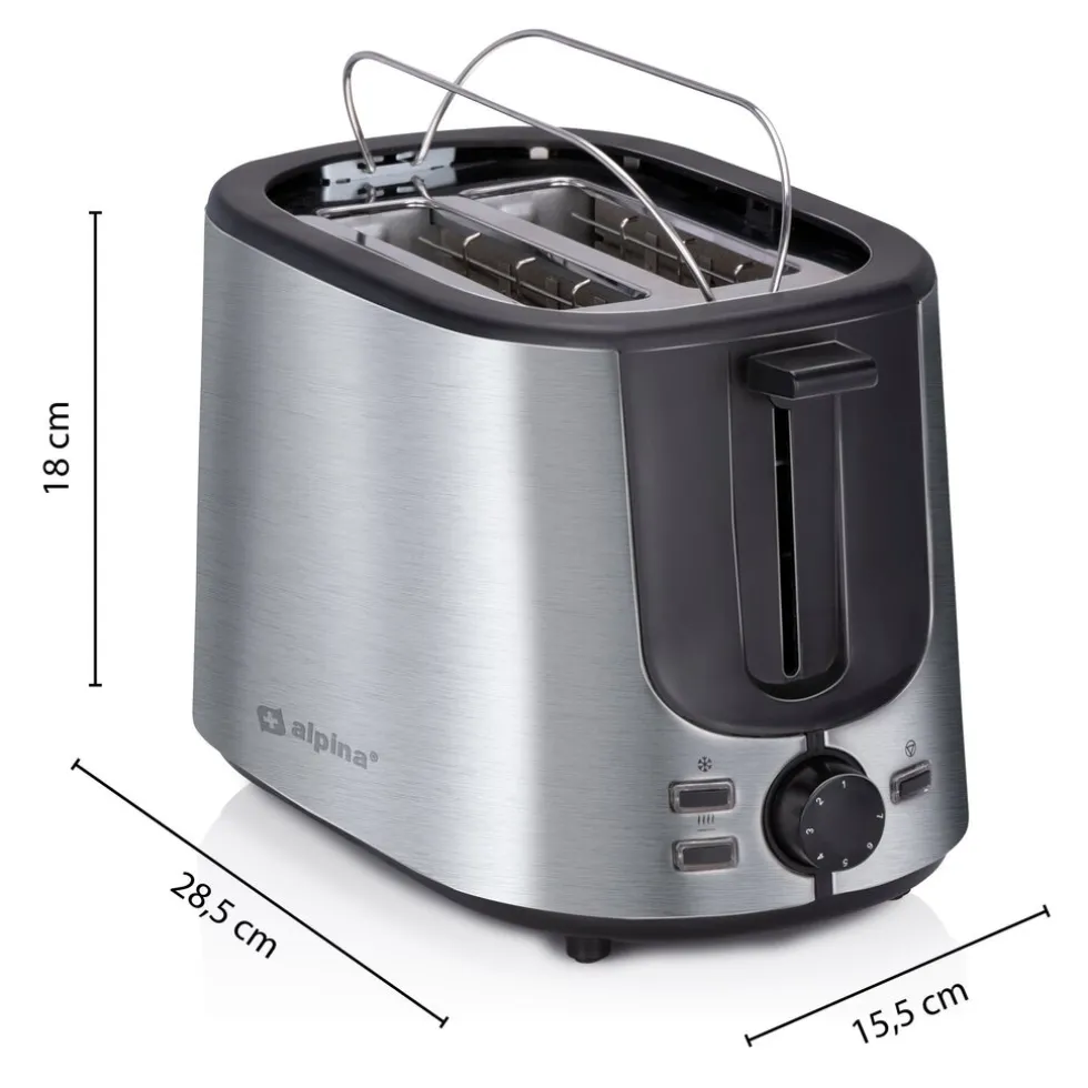 Hoe heb jij je brood het liefste? Het is helemaal aan jou met deze broodrooster met tostiklemmen van alpina. Kies uit 7 verschillende bruiningsstanden, van heel licht geroosterd tot donkerbruin getoast. Sla jij brood altijd in voor de hele week in en bewaar je het daarom in de vriezer? Met de ontdooifunctie zorg jij ervoor dat je brood eerst op de juiste manier ontdooit wordt voordat je het roostert. Zo voorkomt het apparaat dat het geroosterde brood taai wordt door te snelle opwarming. Het broodrooster met tostiklemmen houdt je brood lekker lang warm.
