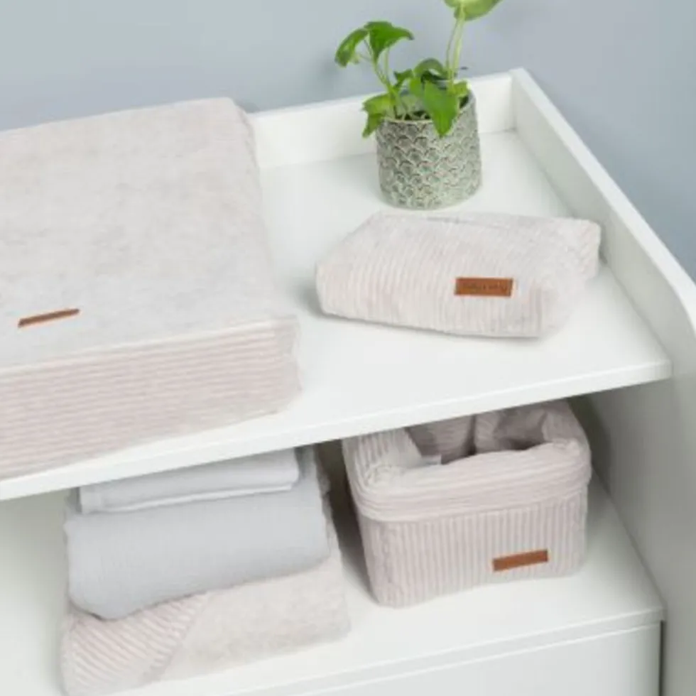 Het Baby’s Only Commodemandje Sense kiezelgrijs wordt ook vaak gebruikt als verzorgingsmandje. Met het handige formaat van 18 x 18 x 14 cm past dit commodemandje perfect op commodes, planken of in kasten. Het biedt een georganiseerde en overzichtelijke opbergoplossing voor luiers, doekjes, verzorgingsproducten en andere benodigdheden.