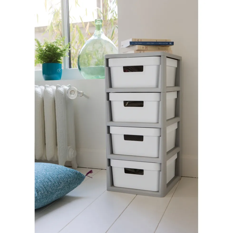 Geef elke ruimte een rustige, georganiseerde uitstraling met eenCurver Infinity Ladesysteem. Dankzij het tijdloze, Scandinavische design en de praktische indeling met 4 lades van 11L creëer je in een handomdraai overzicht in badkamer, slaapkamer, woonkamer of kantoor. Licht, duurzaam en eenvoudig te verplaatsen: dit is slimme opslag die meebeweegt met jouw dagelijkse routine.