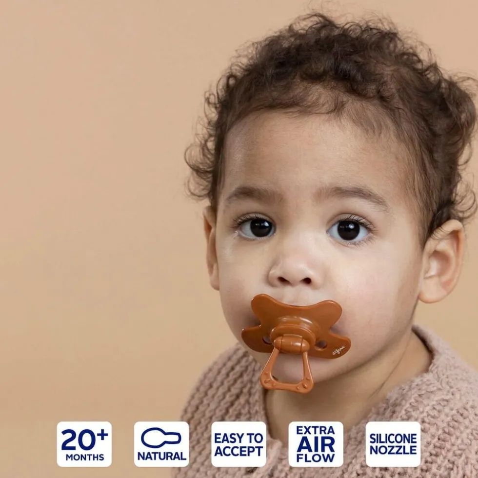 De Difrax Natural 18+M Fopspeen heeft een stevig gevuld, symmetrisch zuiggedeelte. De speen is ontwikkeld voor de zuigbehoefte van kindjes vanaf 18 maanden. De fopspeen is ook aangepast op de sterker worden de kaken.