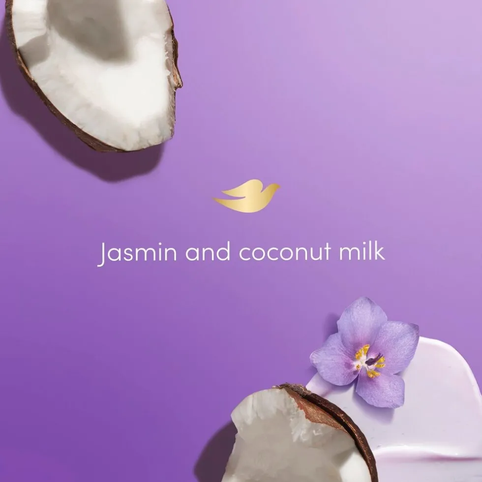 Gebruik Dove Advanced Care Relaxing Douchegel, met de geur van jasmijn en kokosmelk, voor een zachte huid al na één keer douchen.