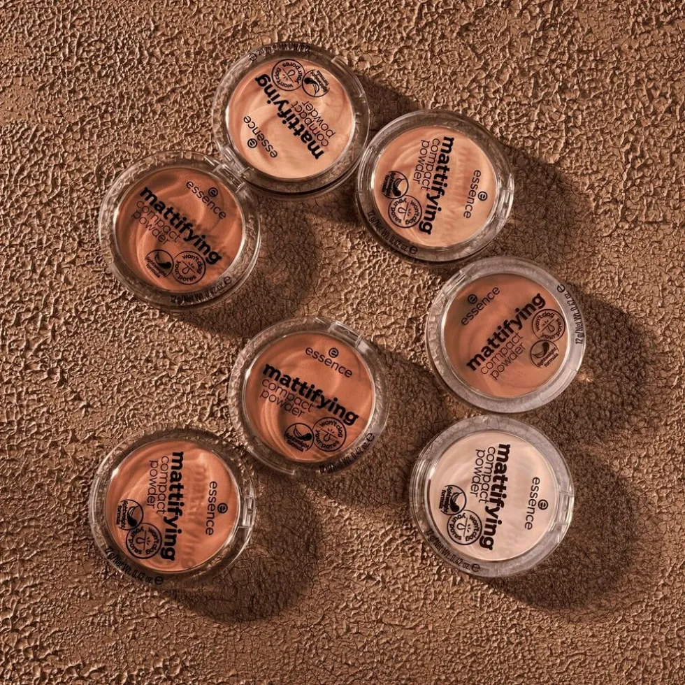Verberg glimmende plekjes met Essence 02 Soft Beige Mattifying Compact Powder.
