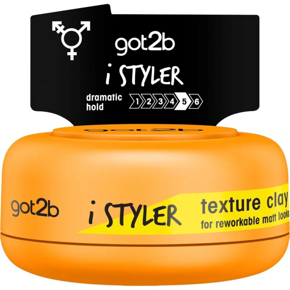 Schwarzkopf Got2b I Styler Texture Clay past bij verschillende haarstijlen. Zoek jij een sterke hold met matte finish, dan is dit het product voor jou. It’s got to be got2b! Creëer jouw individuele, stoere stijl met textuur.