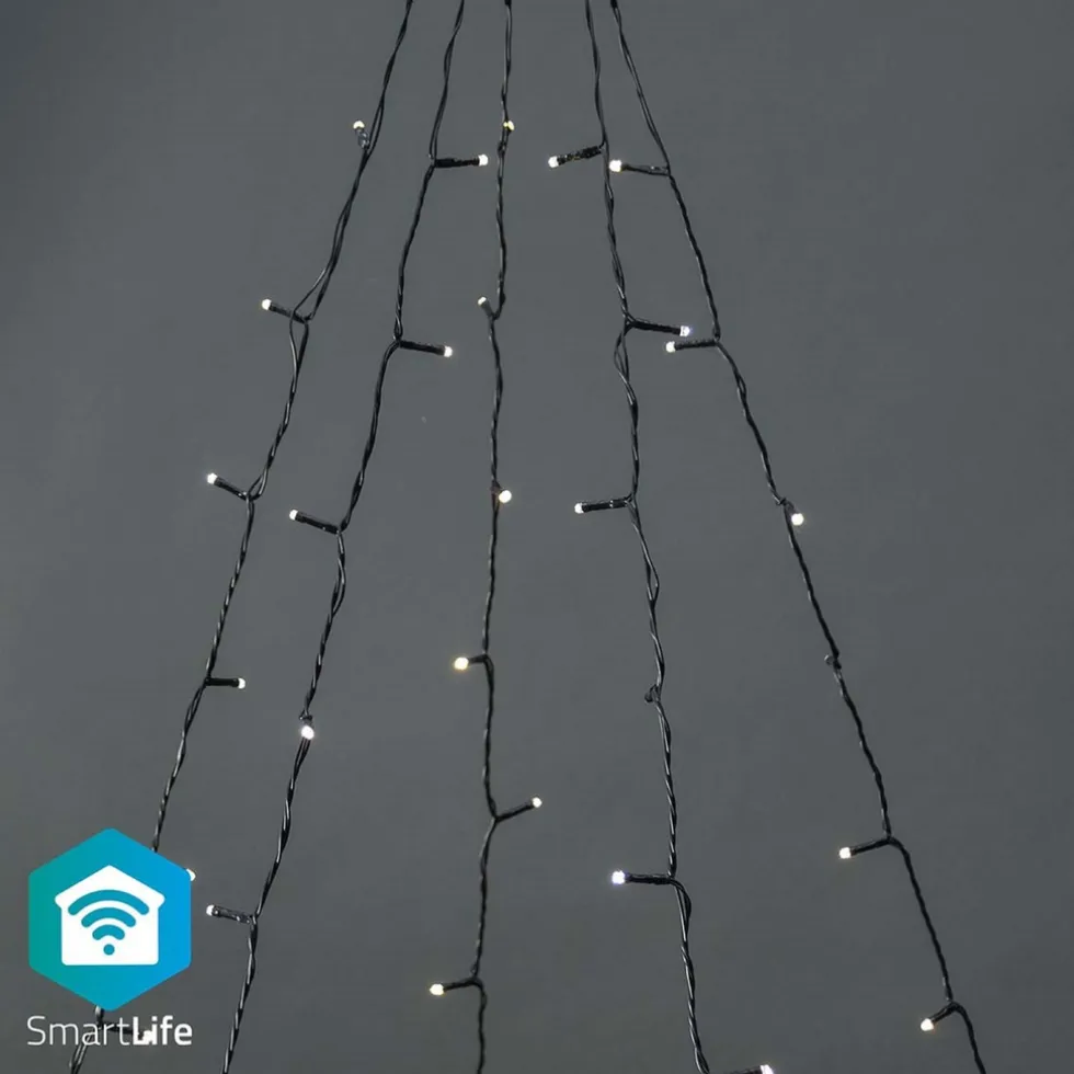 Deze gebruiksvriendelijke Smart Wi-Fi-ophangboom van Nedis met fullcolour LED’s heeft 5 snoeren van 4 meter en is met name bedoeld om aan vlaggenstokken, pergola’s of patio’s te hangen. Het voordeel van deze ophangboom is dat deze weinig ruimte in beslag neemt, maar wel een mooi effect heeft. Door de geavanceerde slimme technologie tilt het jouw decoratie naar een hoger niveau. Naast het regelen van de gewenste helderheid kun je ook een van de 7 vooraf gedefinieerde effecten met verschillende soorten bewegingspatronen of de stabiele modus kiezen. Voor nog meer comfort kun je timers en routines instellen, zodat jouw lichtsnoer altijd op het juiste moment brandt. Met spraakbediening via Amazon Alexa of Google Assistant kun je de lichten ook in- of uitschakelen, dimmen of de helderheid ervan selecteren met alleen maar een spraakopdracht. Met de geïntegreerde microfoonfunctie kunnen de lichten reageren op jouw muziek of andere geluiden.De zwarte kleur van de kabel past netjes bij elke achtergrond en verstoort het optische beeld niet. De snoeren van 5×4 meter bevatten in totaal 200 LED-lampen op 10 centimeter van elkaar. Dit 3 meter lange netsnoer laat niets te wensen over. Erg praktisch als je stopcontact iets verder weg is. De boom kan buiten worden gebruikt.Eenvoudig in te stellenHet Smart Wi-Fi-lichtsnoer kan zonder gateway worden geïnstalleerd en rechtstreeks in je draadloze netwerk worden geïntegreerd. Dit vereenvoudigt de installatie en bespaart bijkomende kosten. Je kunt de lichten bedienen met de gratis Nedis SmartLife-app om automatiseringen in te stellen op basis van tijdsplanning, zonsondergang of in combinatie met andere Nedis SmartLife-producten. In combinatie met Google Home of Amazon Alexa kun je zelfs gesproken commando’s geven om de patronen van de boom te veranderen.