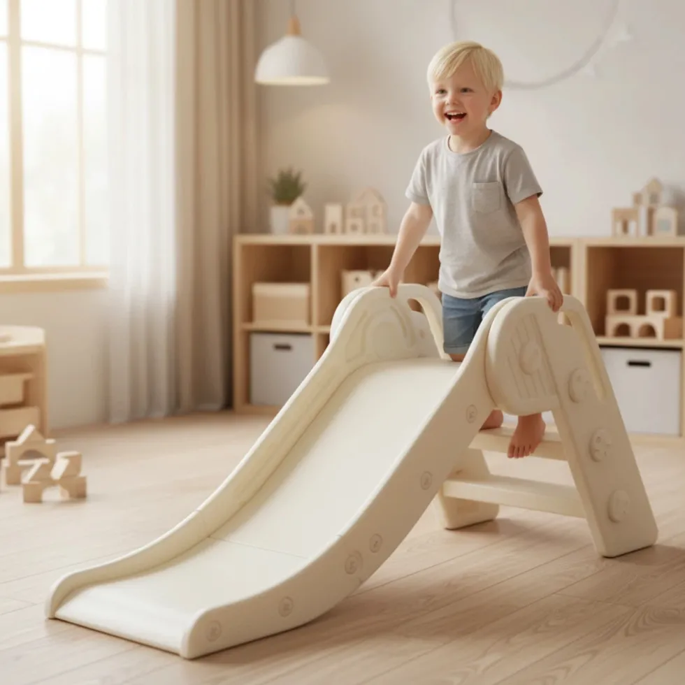 De Glijbaan Peuter Basic Inklapbaar Offhwite/Crème is het perfecte speelgoed voor zowel binnen als buiten, ontworpen om kinderen eindeloos speelplezier te geven. Deze moderne glijbaan, met zijn zachte ronde vormen en stabiele basis, biedt peuters eindeloos speelplezier. Een echte musthave voor iedere speelruimte. Daarnaast is de glijbaan makkelijk in te klappen en op te bergen, waardoor het ideaal is voor kleine ruimtes. Hoe gebruik je de Glijbaan Peuter Basic Inklapbaar: Het opzetten van de Glijbaan Peuter Basic Inklapbaar is eenvoudig en intuïtief. De glijbaan kan snel worden uitgeklapt en is direct klaar voor gebruik. Plaats de glijbaan op een vlakke ondergrond en zorg ervoor dat er voldoende ruimte is rondom de glijbaan voor veilig gebruik. Na het spelen kun je de glijbaan eenvoudig weer inklappen en opbergen, wat vooral handig is in kleinere ruimtes. Eigenschappen: • Russle Glijbaan Peuter Basic Inklapbaar • Kleur: Offwhite/Crème • Afmetingen: 118 x 35 x 49 cm • Platformhoogte: 36 cm • Materiaal: Duurzaam kunststof • Gewicht: 7 kg • Geschikt voor kinderen van 1 tot 4 jaar • Maximale belasting: 30 kg • Inclusief antislip treden voor extra veiligheid. De voordelen van de Glijbaan Peuter Basic Inklapbaar: • Eenvoudig op te bergen dankzij het inklapbare ontwerp • Lichtgewicht en gemakkelijk te verplaatsen • Stevig en duurzaam materiaal voor langdurig gebruik • Ideaal voor zowel binnen- als buitengebruik • Helpt kinderen met het ontwikkelen van motorische vaardigheden en balans. Waarschuwing: Gebruiken onder direct toezicht van een volwassene. Plaats de glijbaan op een stevige ondergrond en zorg voor een veilige omgeving.