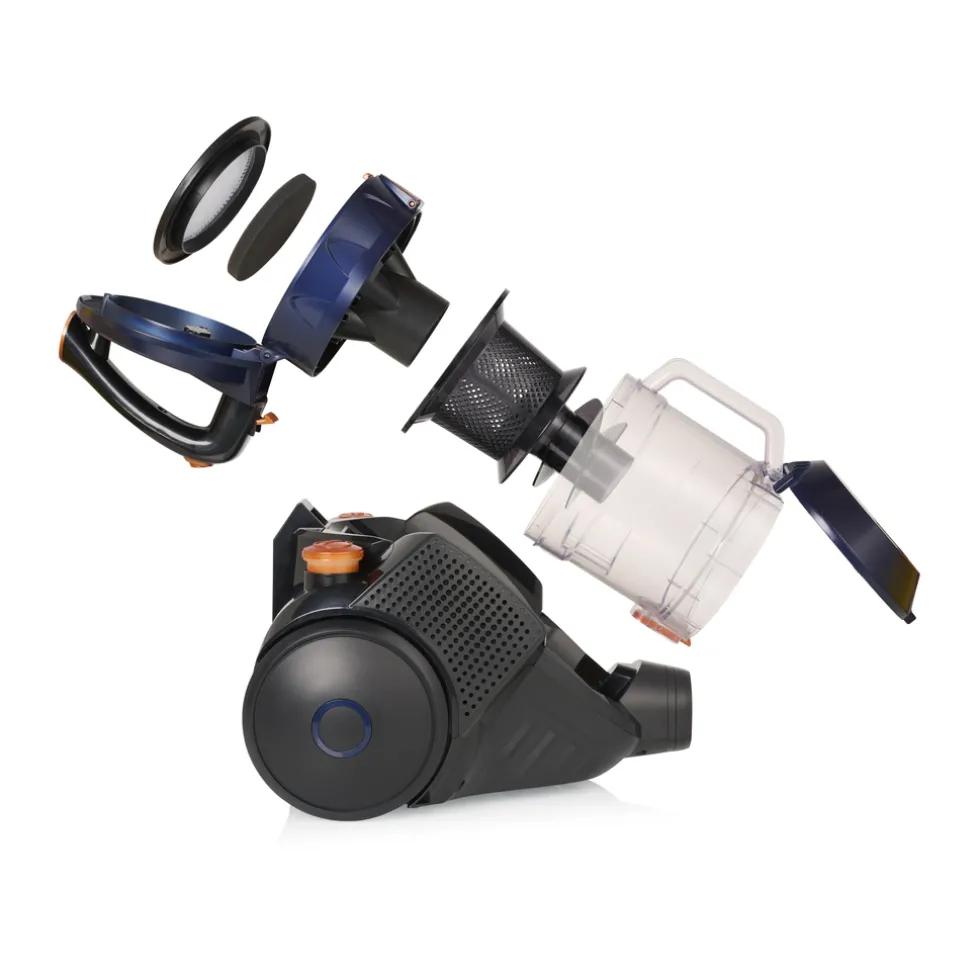 De Cyclone Stofzuiger beschikt over een hoogefficiënte motor met een zuigkracht van 18,5kPa en een vermogen van 700 watt. Dit maakt hem ongelooflijk krachtig, en zuigt ook alle kleine deeltjes op! De cyclonische technologie, dat gebruik maakt van een wervelende lucht, zorgt voor sterke zuigkracht. Dit zorgt ervoor dat vuil moeiteloos verwijderd wordt, en je binnenlucht frisser blijft dan ooit. Bovendien heb je geen wegwerpzakken meer nodig. Ervaar ononderbroken schoonmaaksessies met de ruime 2,8-liter stofbak. Dit alles maakt je schoonmaakroutine een fluitje van een cent.