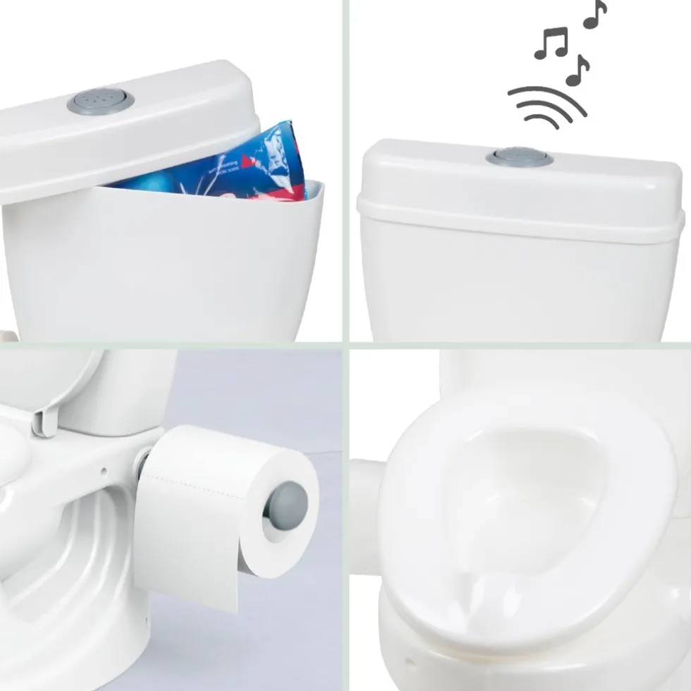 Op dit potje van Babygo leert je kleintje om zelfstandig naar het toilet te gaan. Hij ziet eruit als een echte wc en heeft zelfs een toiletrolhouder! Daarnaast beschikt dit potje over doortrekgeluiden en zal het voor je kindje net lijken alsof hij/zij al naar de ‘grote mensen wc’ gaat.