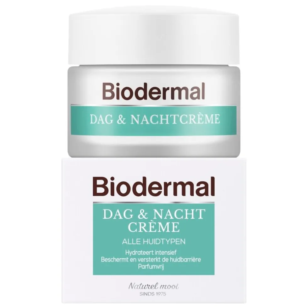Houd je huid in goede conditie met Biodermal Dag & Nachtcrème voor alle Huidtypen. De rijke crème combineert de verzachtende eigenschappen van een dagcrème met de voedende en regenererende eigenschappen van een nachtcrème.
