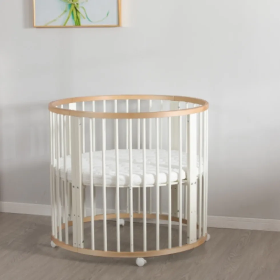 De box wordt geleverd met een comfortabel matras, zodat uw kind direct kan liggen of spelen. De natuurlijke houtkleur en ronde vorm maken het een stijlvolle toevoeging aan elke ruimte en passen goed bij verschillende interieurstijlen.