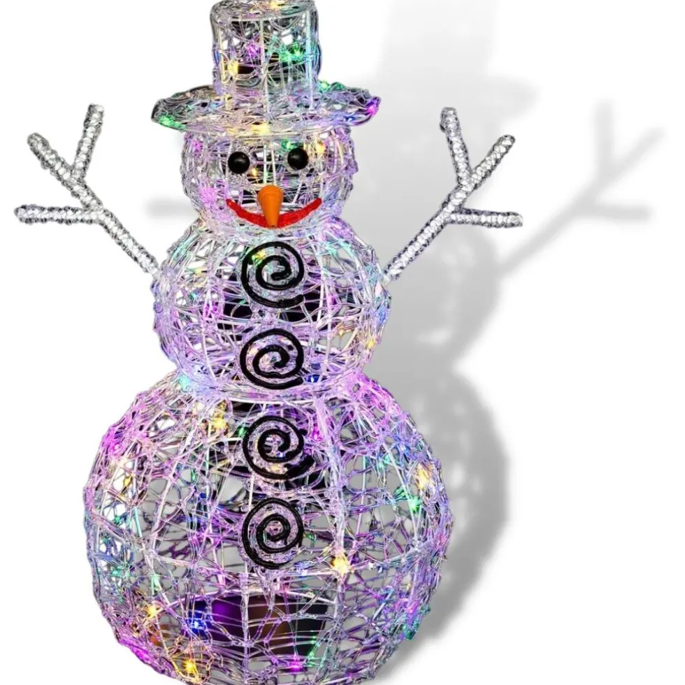 Deze sneeuwman is gedecoreerd met 100 veekleurige ledlampjes. Deze kan zo in een winters & besneeuwd landschap! Dankzij de 8 lichtanimaties geniet je elke avond van een andere lichtshow.