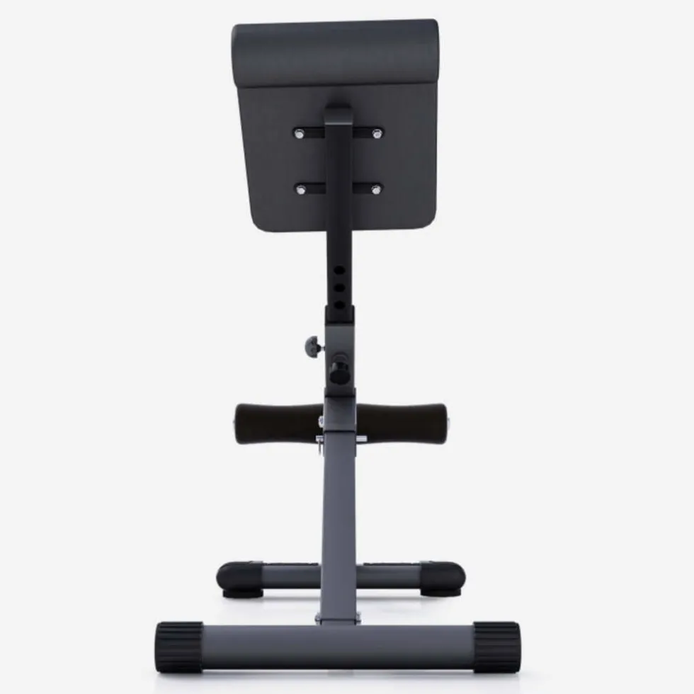 Met dezehyperextensie bank (inklapbaar), kun je je rugspieren en in het bijzonder de onderrugspieren trainen door middel van hyperextensies. Met deze oefening, die door veel mensen vaak wordt genegeerd (de onderrugspieren zijn immers geen ‘strandspieren’!), train je met name deerector spinaespiergroep, welke je in staat stelt om je rug te rechten. Ook de overigecorespierenwerken mee tijdens deze oefening: je traint er dus ook jebuikspierenmee en de spieren in het midden van de rug.