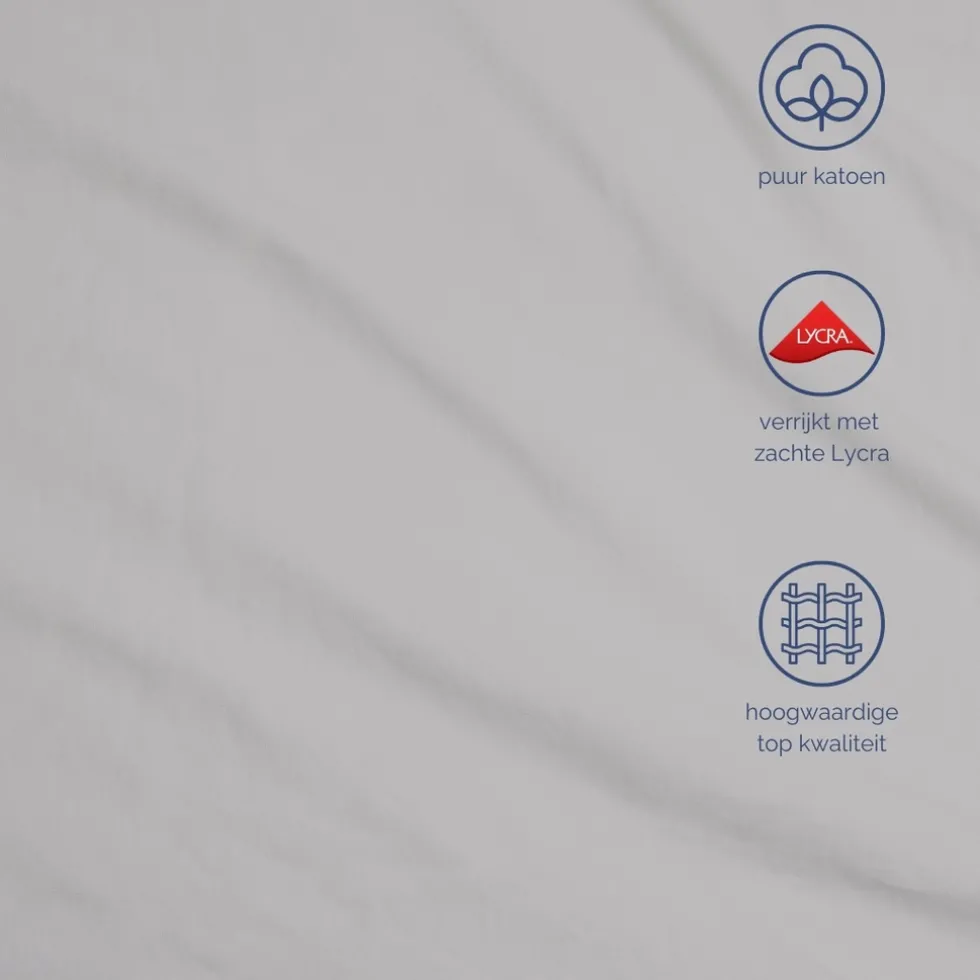- Perfecte pasvorm dankzij de hoge elasticiteit van lycra, waardoor het hoeslaken soepel om het topmatras sluit.