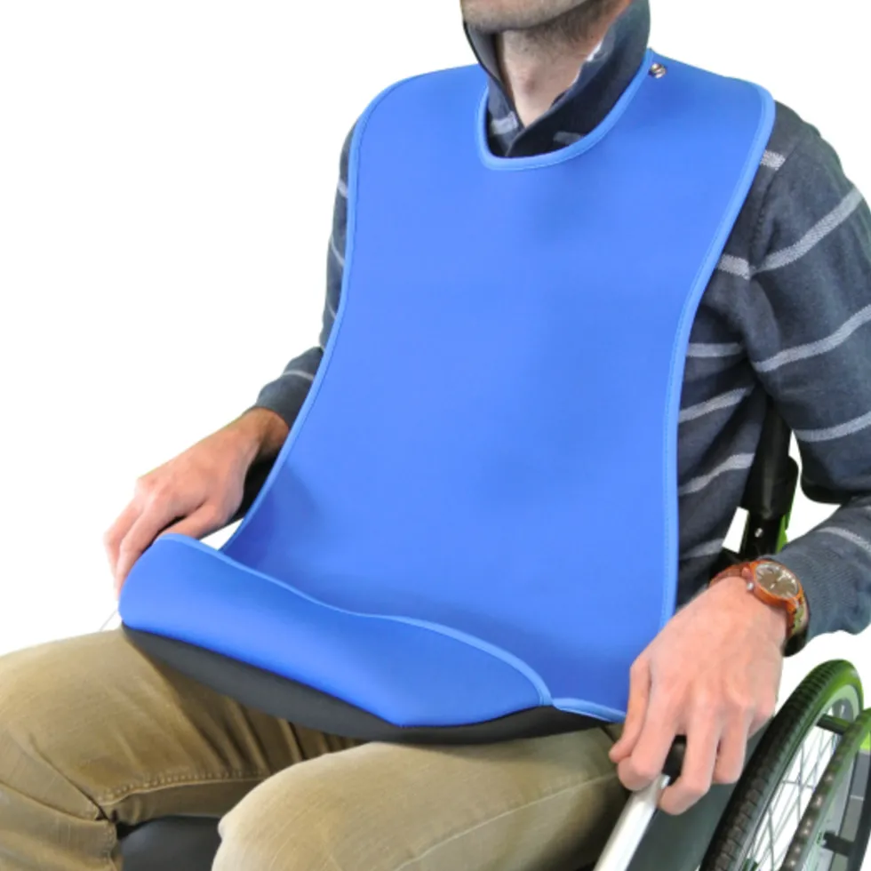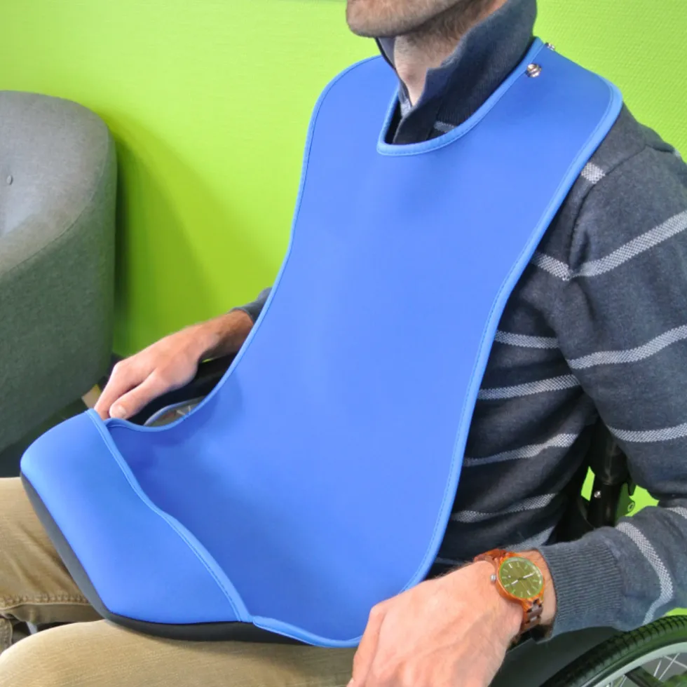 Deze slab is speciaal ontworpen voor gebruik door volwassen personen. Omdat de slap extra groot is zal deze uw gehele buik kunnen bedekken. De slab is absorberend en waterdicht, zodat uw kleding niet nat en vies zal worden. Aan de onderzijde van de slab is een opvangzak bevestigd, zodat eten of drinken dat u gemorst heeft eenvoudig opgevangen wordt. Hierdoor zal het niet op uw schoot vallen. Ook kunt u de slab in de wasmachine uitwassen tot op 90 °C. De slab heeft 3 verstelmogelijkheden zodat deze goed om uw nek past.