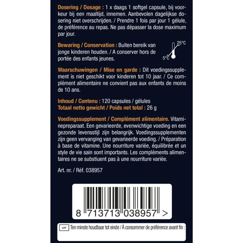 Een gevarieerde, evenwichtige voeding en een gezonde levensstijl zijn belangrijk. Voedingssupplementen zijn geen vervanging van gevarieerde voeding.