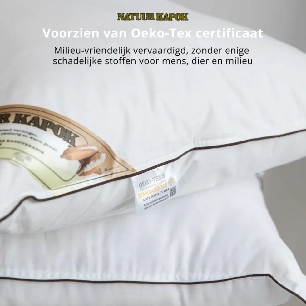Kapok Hoofdkussens zijn verzegeld door een hygiëne-verzegeling, zo bent u ALTIJD gerustgesteld van een nieuw, ongebruikt en onbeslapen hygiënisch product.