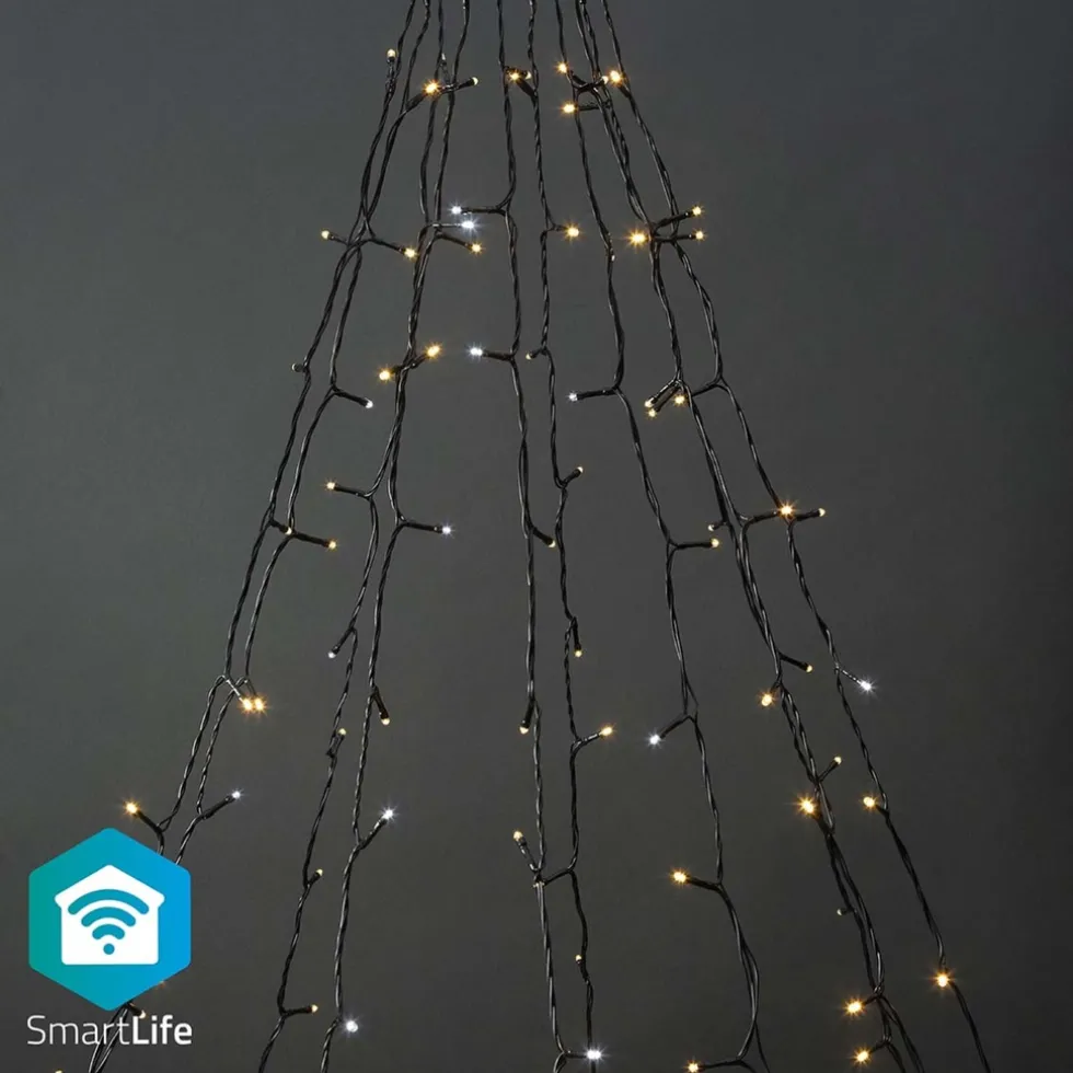 Deze gebruiksvriendelijke Smart Wi-Fi-ophangboom met warmwitte LED’s heeft 10 snoeren van 2 meter en is met name geschikt om aan vlaggenstokken, pergola’s of patio’s te hangen. Het voordeel van deze ophangboom is dat deze weinig ruimte in beslag neemt, maar wel een mooi effect heeft. Door de geavanceerde slimme technologie tilt het jouw decoratie naar een hoger niveau. Naast het regelen van de gewenste helderheid kun je ook een van de 11 vooraf gedefinieerde effecten met verschillende soorten bewegingspatronen of de stabiele modus kiezen. Voor nog meer comfort kun je timers en routines instellen, zodat jouw lichtsnoer altijd op het juiste moment brandt. Met spraakbediening via Amazon Alexa of Google Assistant kun je de lichten ook in- of uitschakelen, dimmen of de helderheid ervan selecteren met alleen maar een spraakopdracht. Met de geïntegreerde microfoonfunctie kunnen de lichten reageren op jouw muziek of andere geluiden.De zwarte kleur van de kabel past netjes bij elke achtergrond en verstoort het optische beeld niet. De snoeren van 10×2 meter bevatten in totaal 200 LED-lampen op 10 centimeter van elkaar. Dit 3 meter lange netsnoer laat niets te wensen over. Erg praktisch als je stopcontact iets verder weg is. De boom kan buiten worden gebruikt.Eenvoudig in te stellenHet Smart Wi-Fi-lichtsnoer kan zonder gateway worden geïnstalleerd en rechtstreeks in je draadloze netwerk worden geïntegreerd. Dit vereenvoudigt de installatie en bespaart bijkomende kosten. Je kunt de lichten bedienen met de gratis Nedis SmartLife-app om automatiseringen in te stellen op basis van tijdsplanning, zonsondergang of in combinatie met andere Nedis SmartLife-producten. In combinatie met Google Home of Amazon Alexa kun je zelfs gesproken commando’s geven om de patronen van de boom te veranderen.