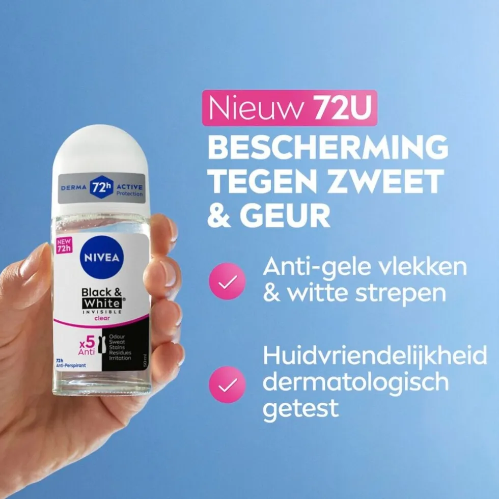 De voordelen van de NIVEA Black & White Invisible Original Antitranspirant Roller: