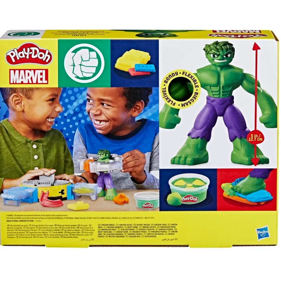 De Play-Doh Hulk Smash And Squish Playset komt met een een buigbare Hulk-actiefiguur van 12,7 cm! Ook bevat de set coole Play-Doh-accessoires waarmee je epische verhalen naspeelt.
