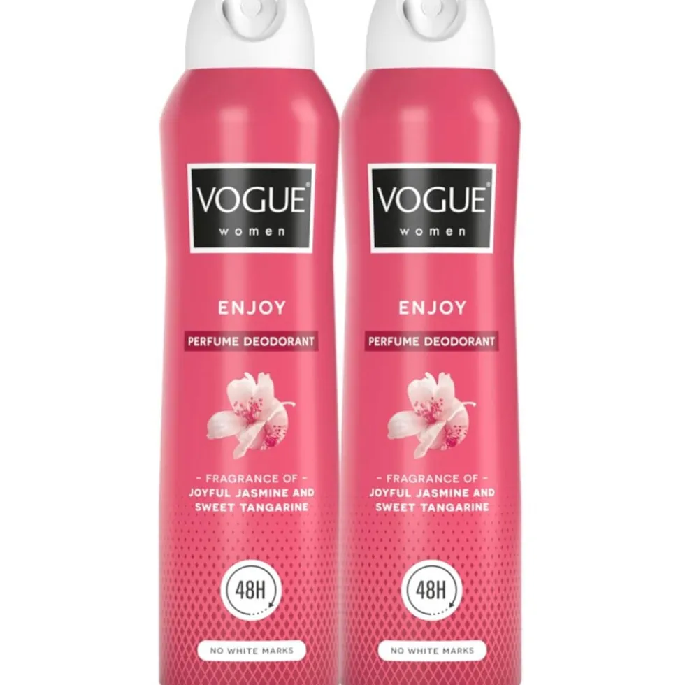 Geniet van de uitzonderlijke, langdurige geur van Vogue Women Enjoy Deodorant waarin zoete, warme en kruidige geuren met elkaar worden gecombineerd. Het is een deodorant en parfum tegelijkertijd. De deodorant beschermt 24 uur lang.