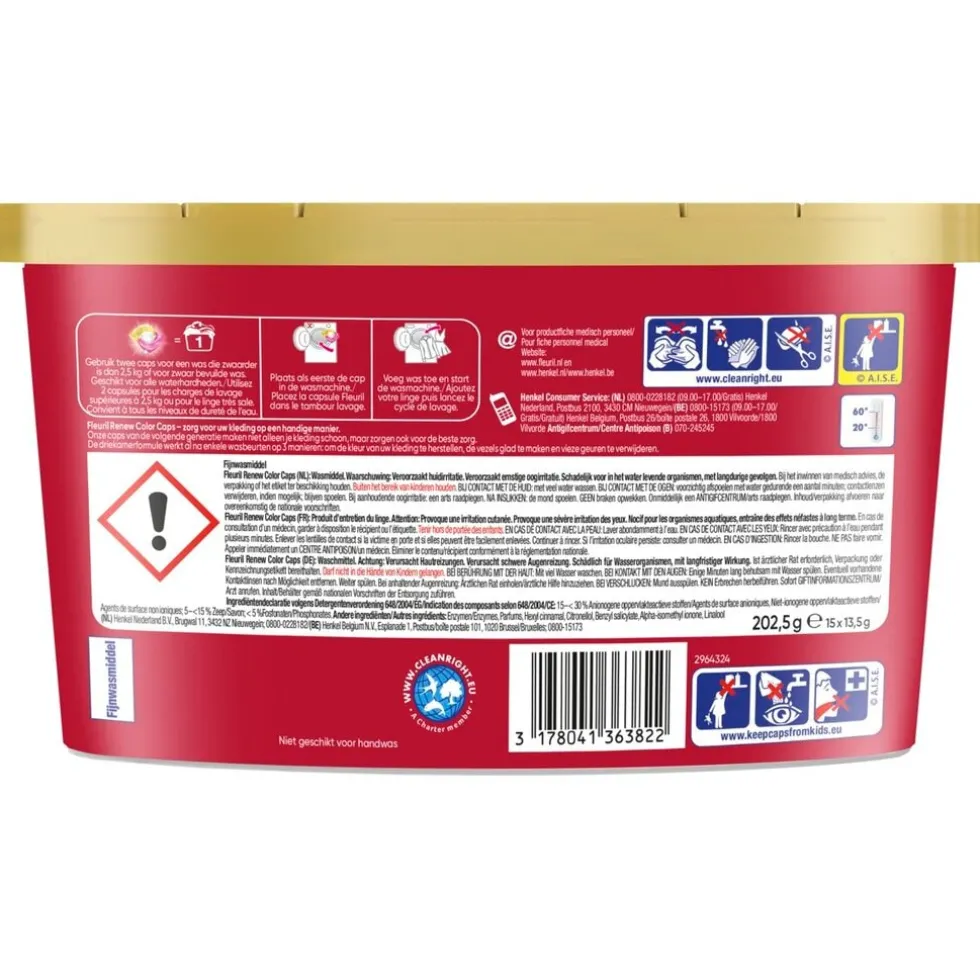 Fleuril Renew Color Caps reinigen je kleding, hernieuwen de kleuren van je kleding was na was en vernieuwen de vezels, voor een glad en mooi resultaat. Daarnaast zorgt het wasmiddel voor een heerlijke geursensatie.