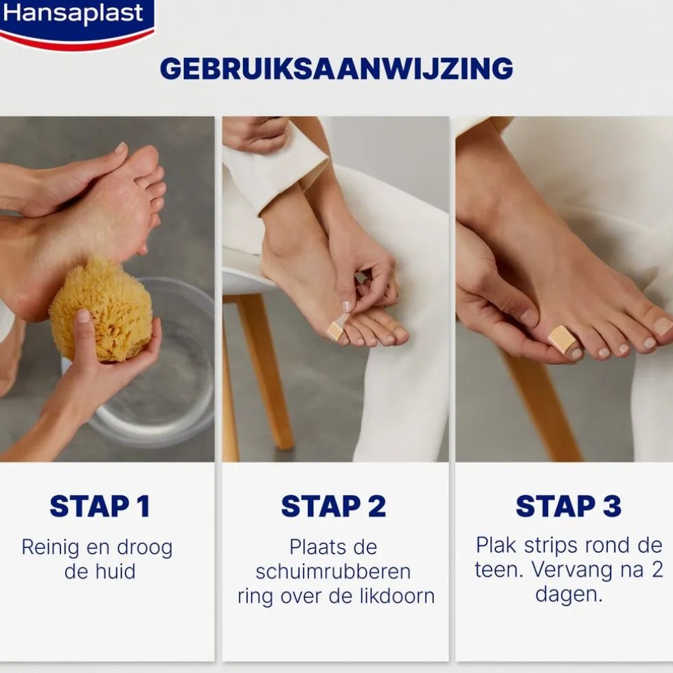 Hansaplast Likdoornpleisters met salicylzuur verlichten onmiddellijk de pijn van druk en wrijving en helpen de likdoorn te verwijderen.