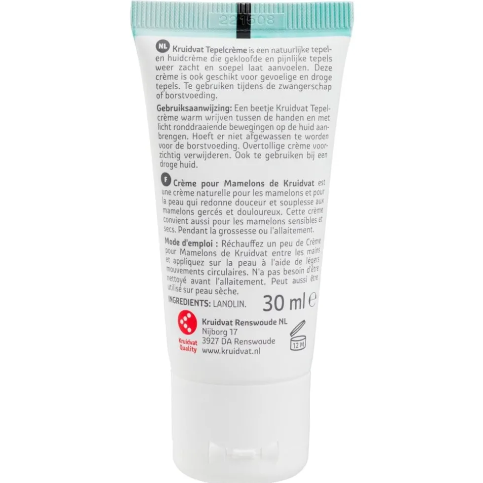 Kruidvat Mama Care Tepelcrème is een natuurlijke tepel- en huidcrème. De crème laat gekloofde en pijnlijke tepels tijdens de zwangerschap of borstvoedingsperiode weer zacht en soepel aanvoelen.