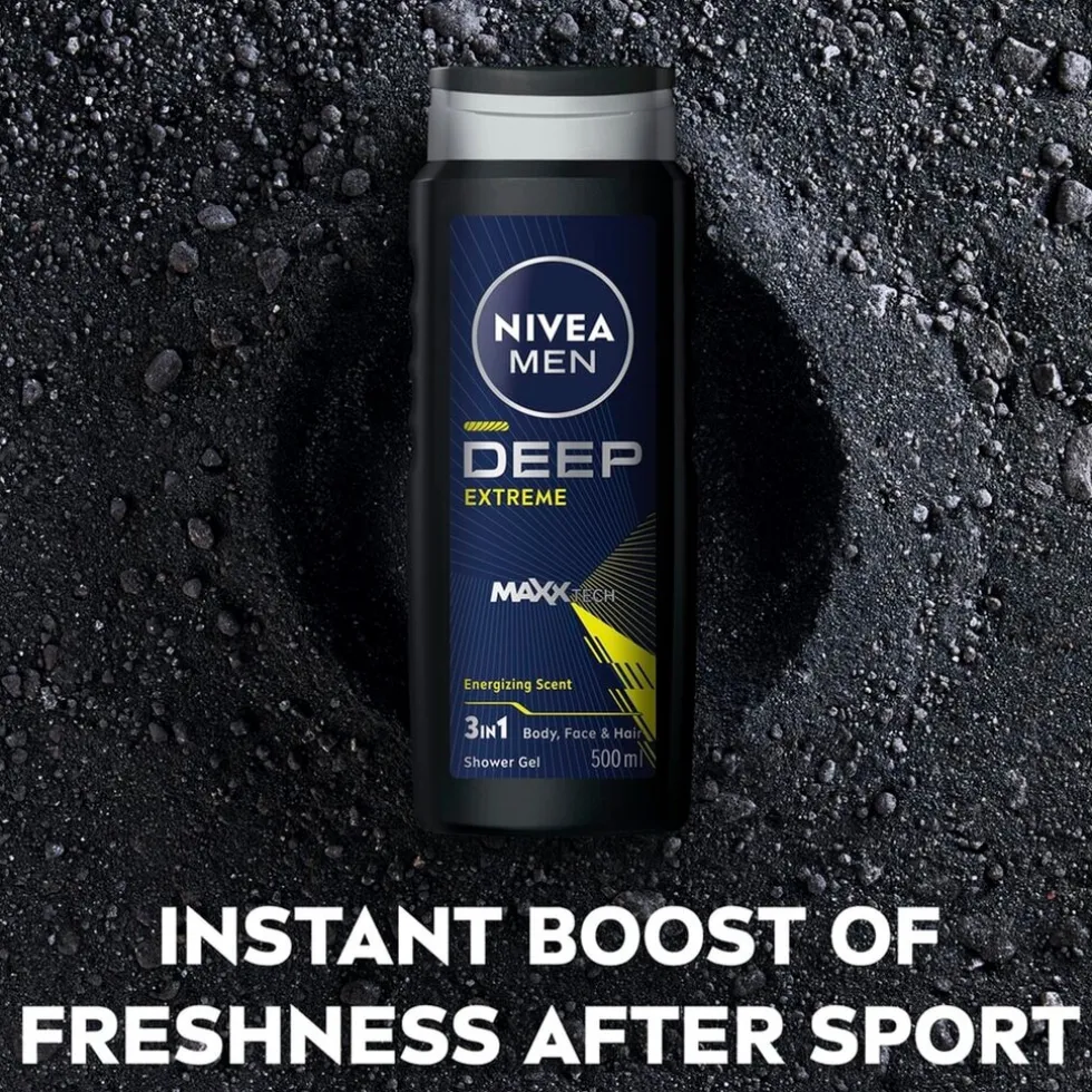 Ontketen je innerlijke kampioen met een verfrissende douche-ervaring met de NIVEA Men Deep Extreme Douchegel.