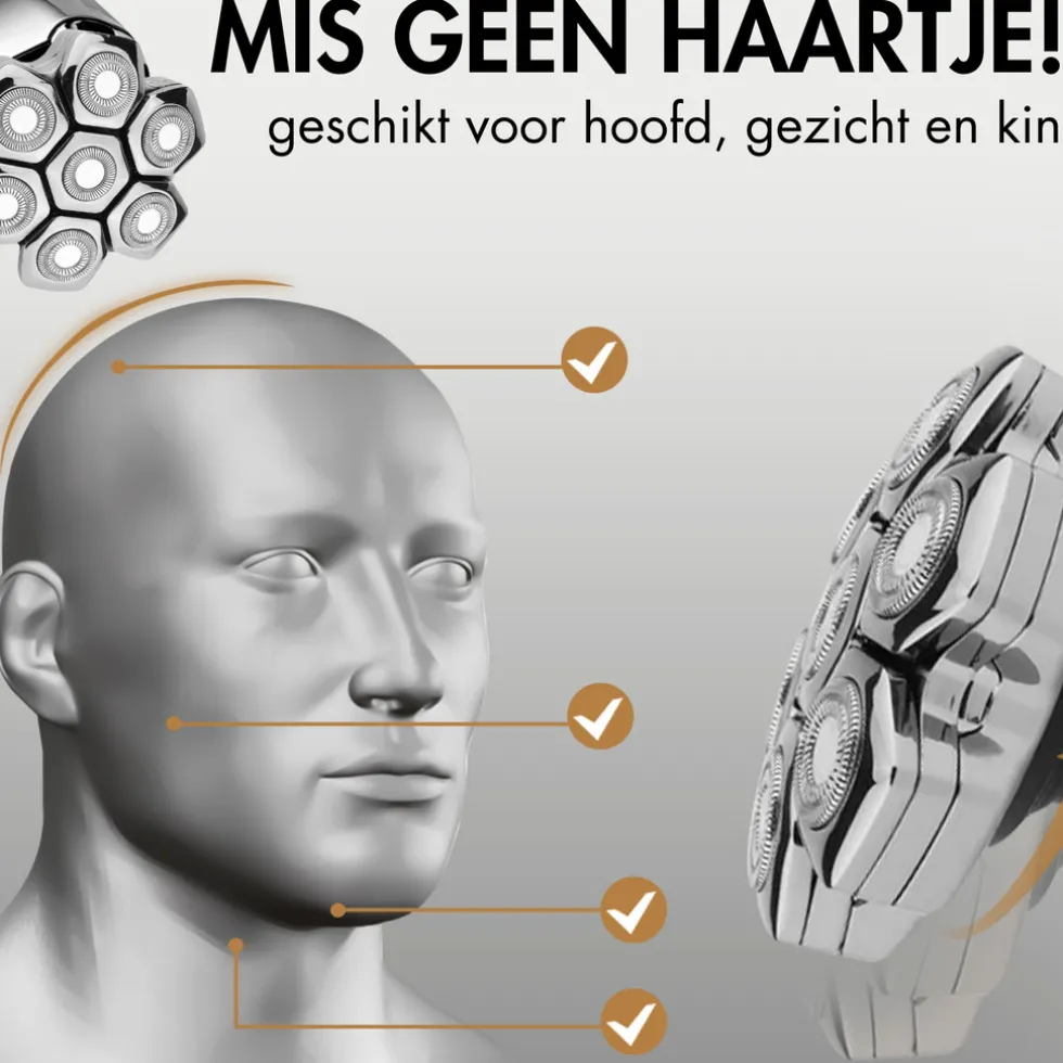 ✓ Groter scheeroppervlak – Met 7 (!) ronde scheerkoppen bereikt het scheerapparaat van Sansbeauté® een groter scheeroppervlak zodat er meerdere haartjes tegelijk worden meegepakt. Zeven flexibele 7D scheerbladen bewegen vloeiend over je kin, schedel en wangen; het kan bijna niet makkelijker!