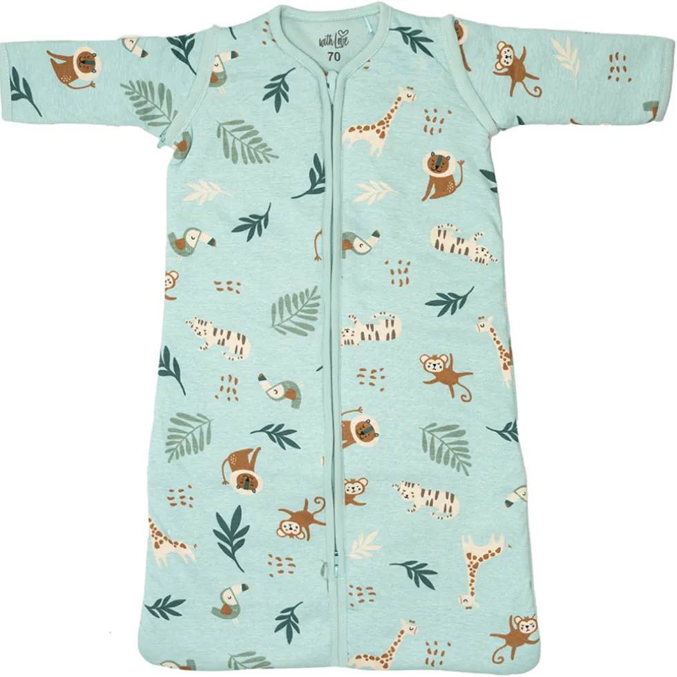 Deze leuke slaapzak is van het merk With Love. De fijne slaapzak is gemaakt van jerseykatoen. De stof van de slaapzak is slijtvast en soepel. De mouwen van de slaapzak zijn afritsbaar.