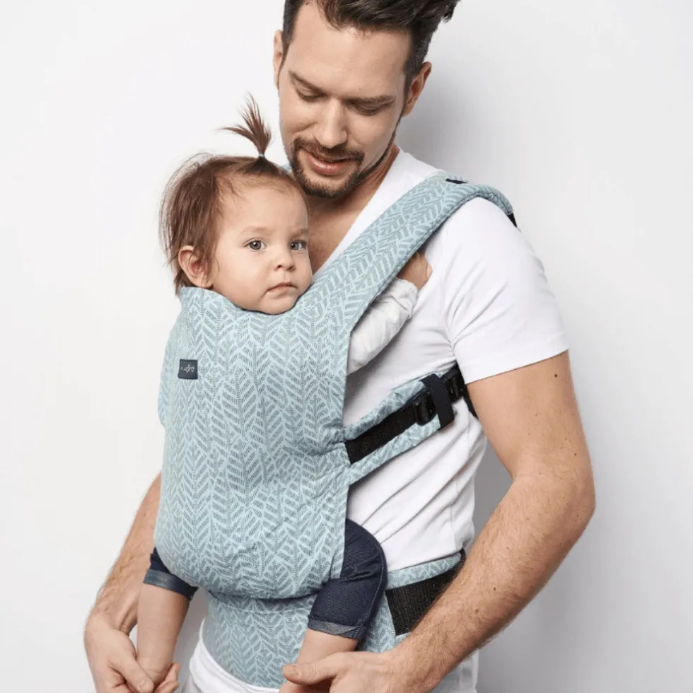De draagzak is zowel als aan de voorkant als achterkant te dragen. Onderaan de draagzak zit een comfortabele heupband die om de middel van de ouder bevestigd kan worden met een gesp. Door deze band wordt het gewicht van je kleintje gelijkmatig verdeeld en is het dus minder zwaar voor de ouder. De band is verstelbaar van 65 cm tot 140 cm.