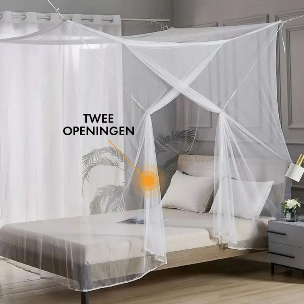 Deze klamboe is speciaal ontworpen voor jouw comfort en gemoedsrust. Met twee handige openingen is het in- en uit bed stappen een fluitje van een cent, zonder dat je last hebt van vervelende muggen of andere insecten. Zo geniet je van optimale bescherming tijdens je nachtrust – thuis én onderweg.