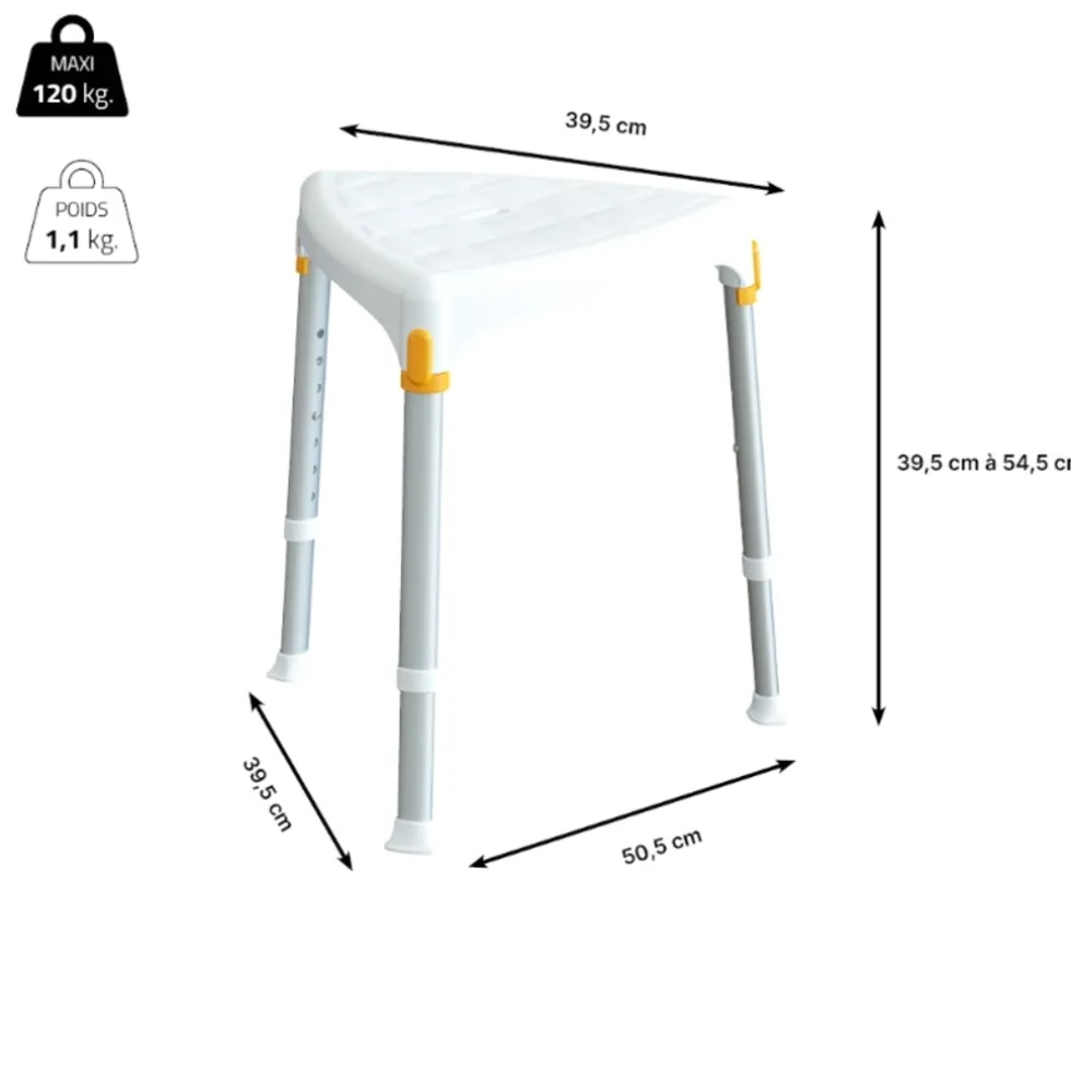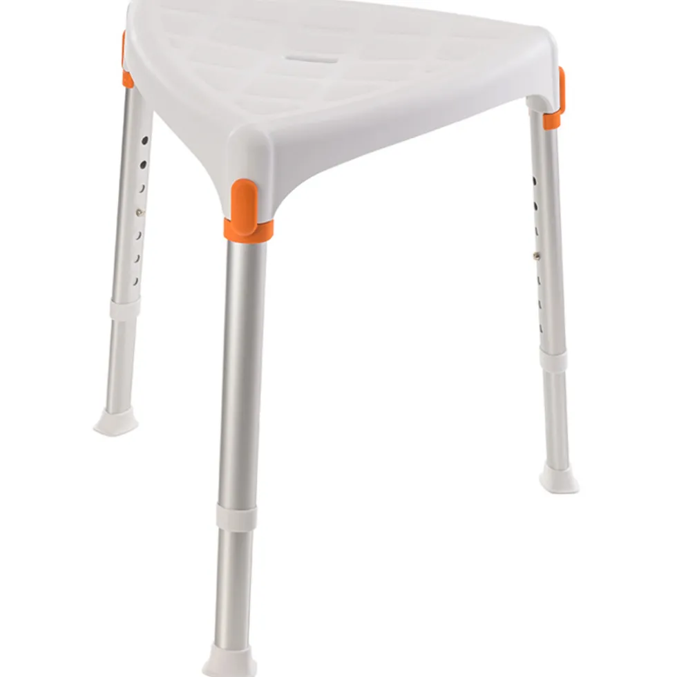 Dit kleine design krukje is een handige accessoire voor in uw badkamer. U kunt het krukje gebruiken om op te zitten tijdens het douchen. Dit kan van pas komen wanneer u niet goed ter been bent. Zittend douchen verkleint uw kans op uitglijden. Omdat het krukje een driehoekige vorm heeft is deze geschikt voor kleine ruimtes. Ook is de kruk in hoogte verstelbaar en heeft deze een gleuf in de zitting voor een goede afwatering. Dit product is een medisch hulpmiddel.