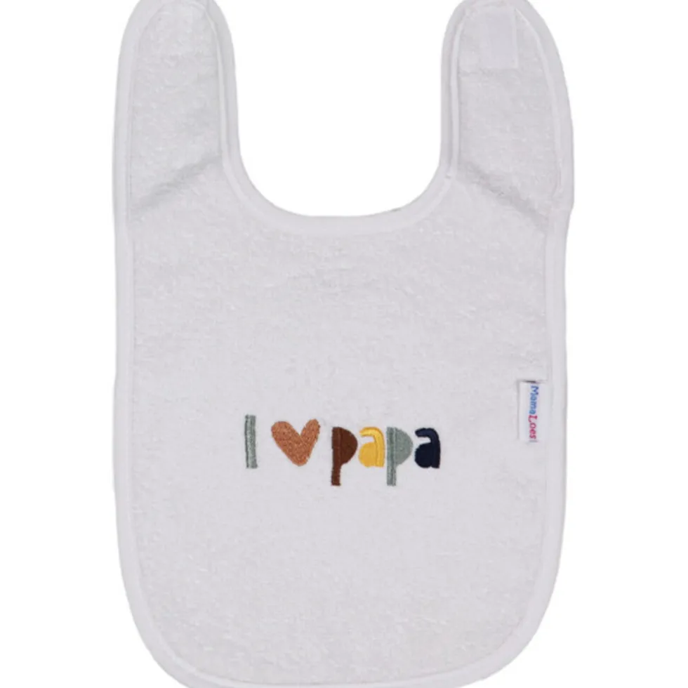 Met deze fijne badstof slab van MamaLoes blijven de kleertjes van je kleine tijdens het eten schoon. De slab is gemaakt van zacht materiaal dat goed absorbeert, dus de kleertjes zullen ook droog blijven als je kleine knoeit. Op de slab staat in vrolijke kleuren de leuke tekst; ‘i love papa’.Het slabbetje is gemaakt van 100% katoen, lekker comfortabel dus. De slab heeft een klittenband sluiting en is wasbaar in de wasmachine op 40ºC. Daarnaast is de slab geschikt voor in de droger en mag hij gestreken worden. Eet smakelijk!Eigenschappen:
