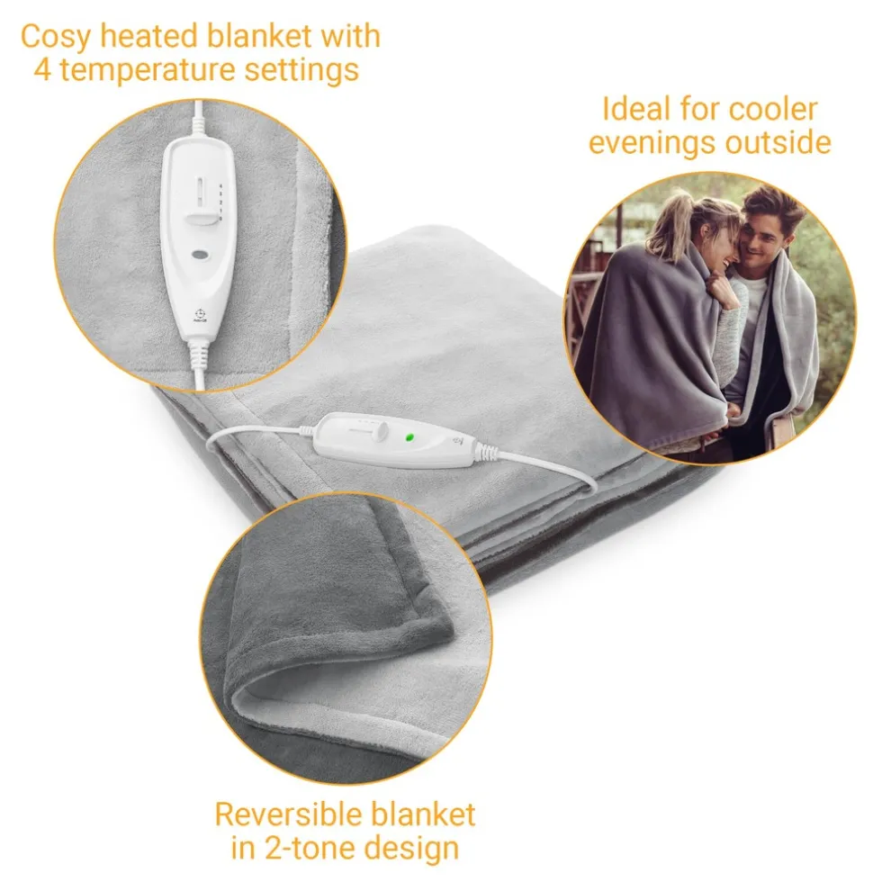 De 4 warmtestanden zorgen er voor dat je altijd de juiste temperatuur hebt voor elke situatie of persoon. Met zijn krachtige 120 Watt, een oppervlakte van maar liefst 200 bij 150 cm en lange kabel van 2,3 m krijg je een zeer complete knuffelaar. De knuffeldeken is voorzien van een oververhittingbeveiliging en schakelt na 3 uur automatisch uit.