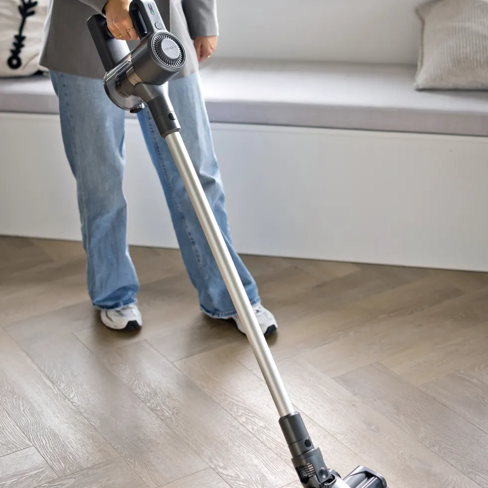 De Nexxt Draadloze Steelstofzuiger maakt gebruik van cycloontechnologie, die zorgt voor maximale zuigkracht en een efficiënte stofopvang. Deze technologie scheidt stof en vuil effectief van de luchtstroom, waardoor het stofreservoir efficiënt gevuld wordt zonder verlies van zuigkracht. Dit betekent dat je minder vaak hoeft te legen en altijd een krachtige schoonmaakervaring hebt, zelfs bij langdurig gebruik.