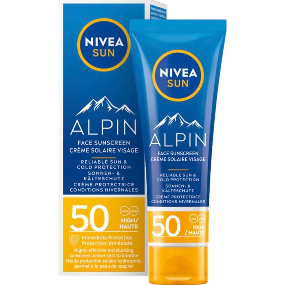 Nivea Sun Alpin SPF50 Face Zonnebrandcrème is speciaal ontwikkeld voor de gevoelige gezichtshuid en biedt directe, betrouwbare bescherming tegen schadelijke uv A- en ub B-straling.